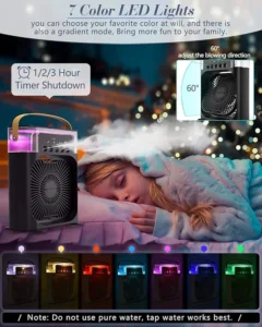 By choosing our eco-friendly Mini Cooler Water Fan, you’ll not only stay cool but also contribute to a more sustainable future.